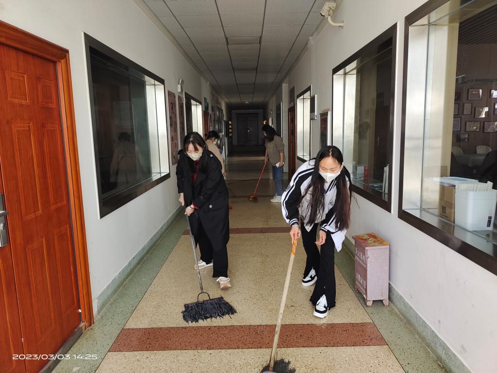 学生第一党支部党员采用主题党日活动形式,到烹饪楼,打扫公共卫生,组织疫情消杀,开展文明实践志愿服务活动。