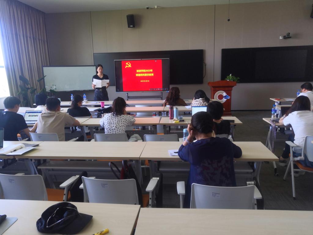 2023年5月5日,按照《菲律宾环球360官网办公室关于组织开展2023年师德师风警示教育的通知》的工作部署,旅游学院党委结合学习贯彻习近平新时代中国特色社会主义思想主题教育,紧紧围绕深入“学习贯彻落实党的二十大精神和习近平总书记关于师德师风重要论述”的要求,在惟行楼6301教室开展2023年师德师风警示教育,全体教师参会。